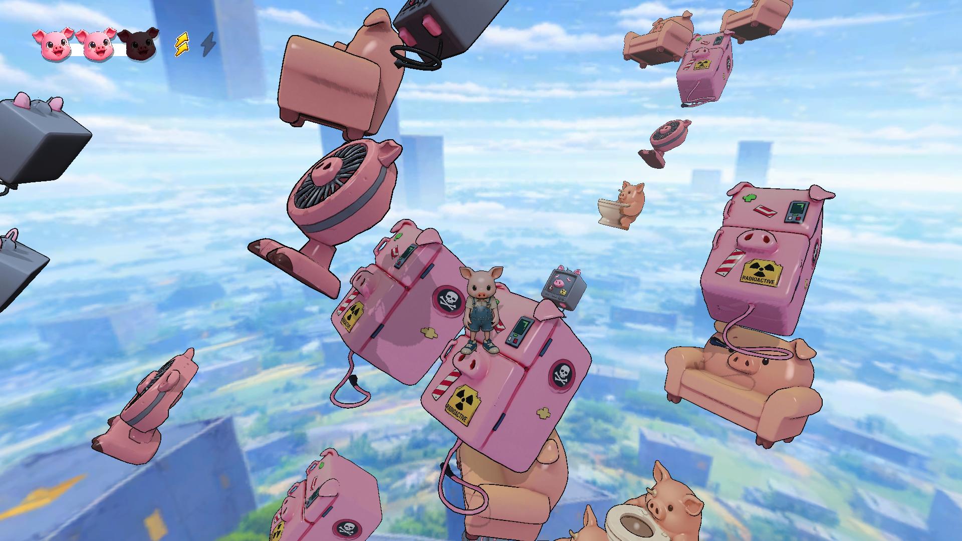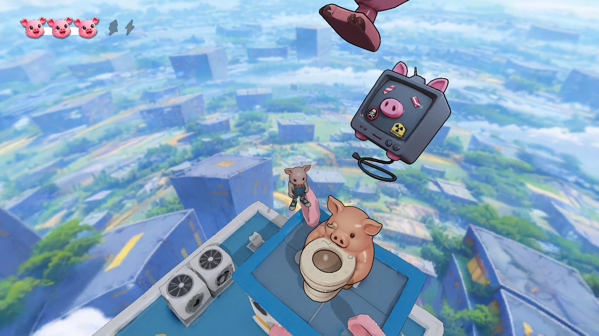 Dash: a quick burst of speed in the air or on the ground, helping the pig cross wider gaps and save itself from falling.