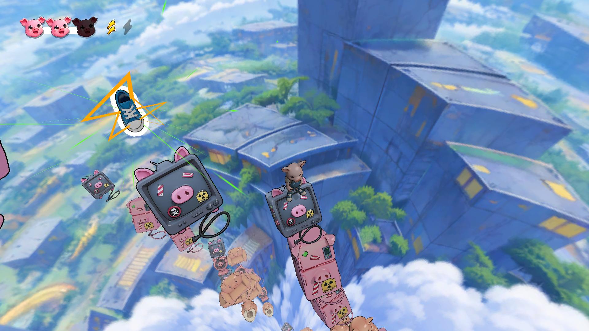 Along the way, the pig can collect power-ups that improve mobility, such as:
